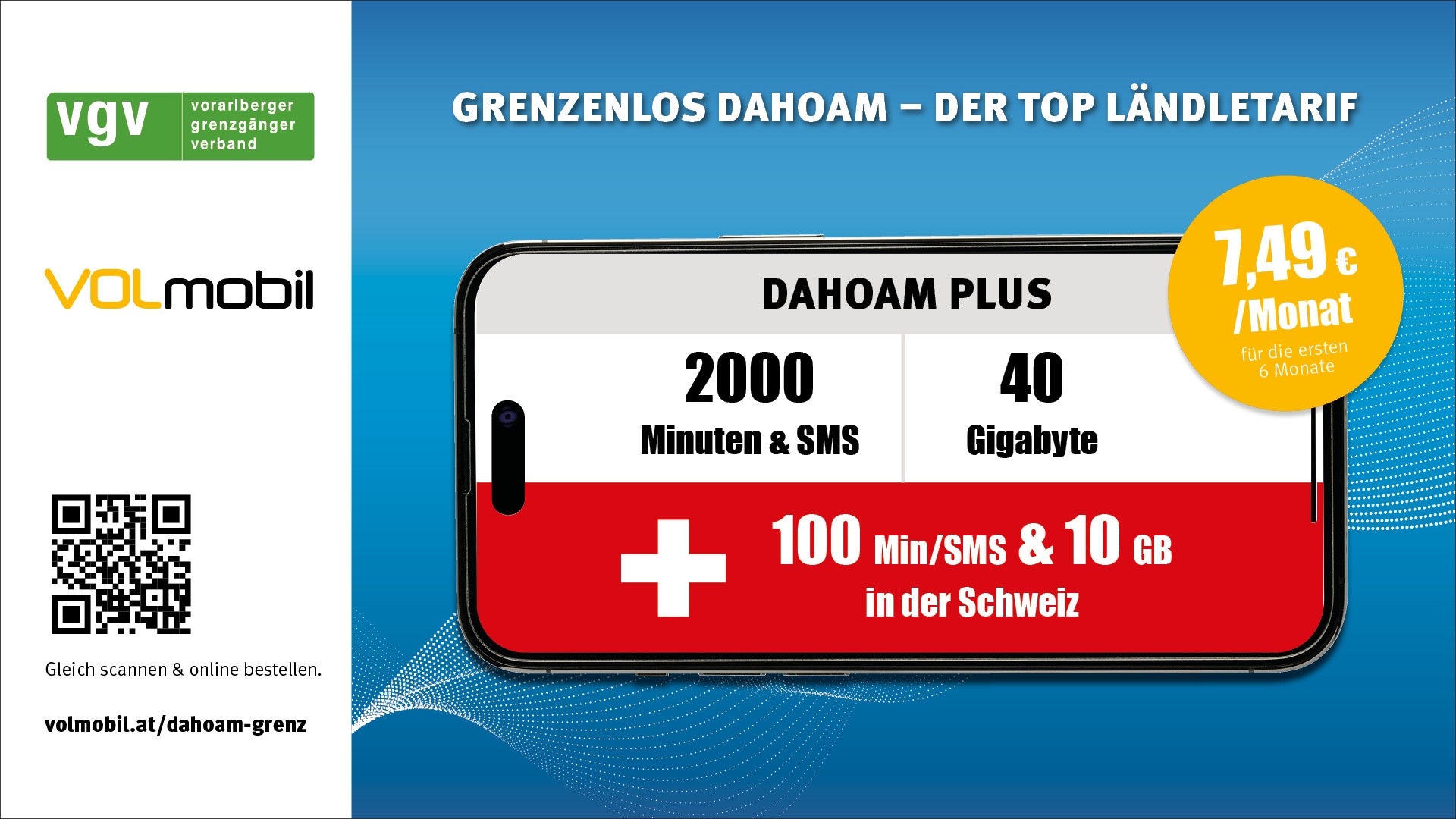 VOLmobil bietet in Kooperation mit dem vgv vergünstigte Mobilfunktarife für Grenzgänger:innen an.